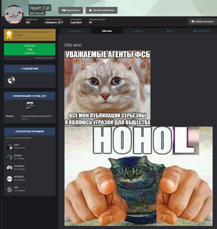 ВОТ ПОЖАЛУЙСТА,УВАЖАЕМАЯ АДМИНИСТРАЦИЯ ПРОЕКТА WOG,ЗАНИМАЕТСЯ НАЦИЗМОМ ВМЕСТО ТОГО ЧТОБЫ ПОДНИМАТЬ ОНЛАЙН.СПАСИБО БОЛЬШОЕ,ОЧЕНЬ ПРИЯТНО ЧИТАТЬ ЭТИ СЛОВА(ОСКОРБЛЯЮЩИЕ)